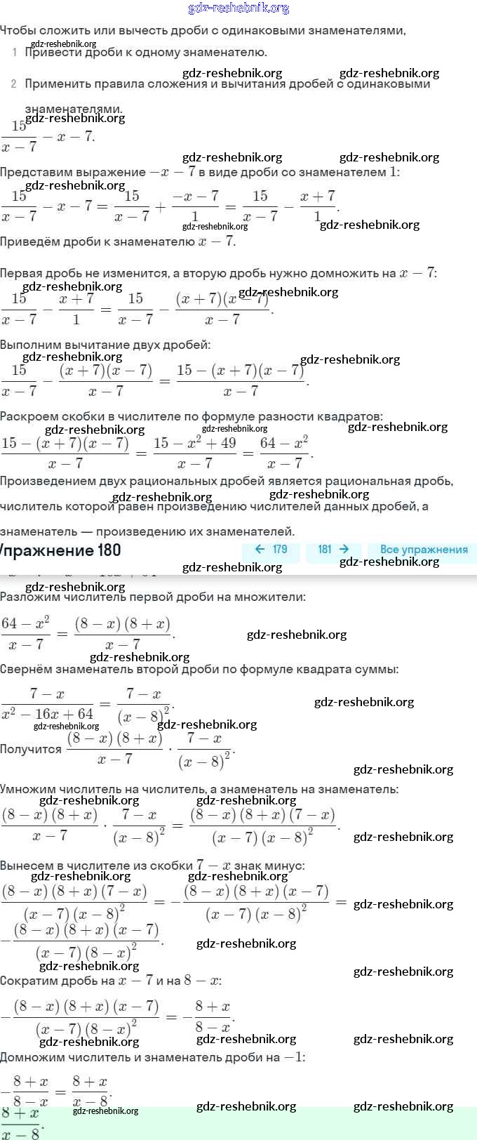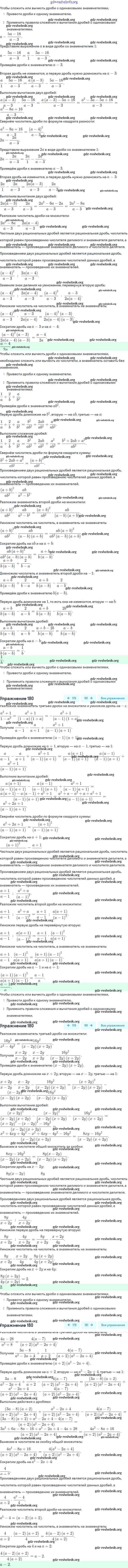 gdz-reshebnik.org - сайт готовых домашних заданий и решебников для школьников по Алгебре для восьмого класса. Предоставляем готовые ответы на задания, авторские материалы к Учебнику Мерзляк, Полонский Алгоритм успеха - §6. Тождественные преобразования рациональных выражений 180 . Основная часть контента представлена в бесплатном онлайн-формате с удобным и простым интерфейсом.