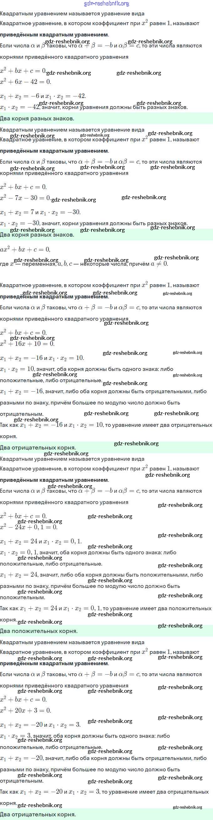 ГДЗ решебники Учебник по Алгебре 8 класс Мерзляк, Полонский Алгоритм успеха - §21. Теорема Виета 724
