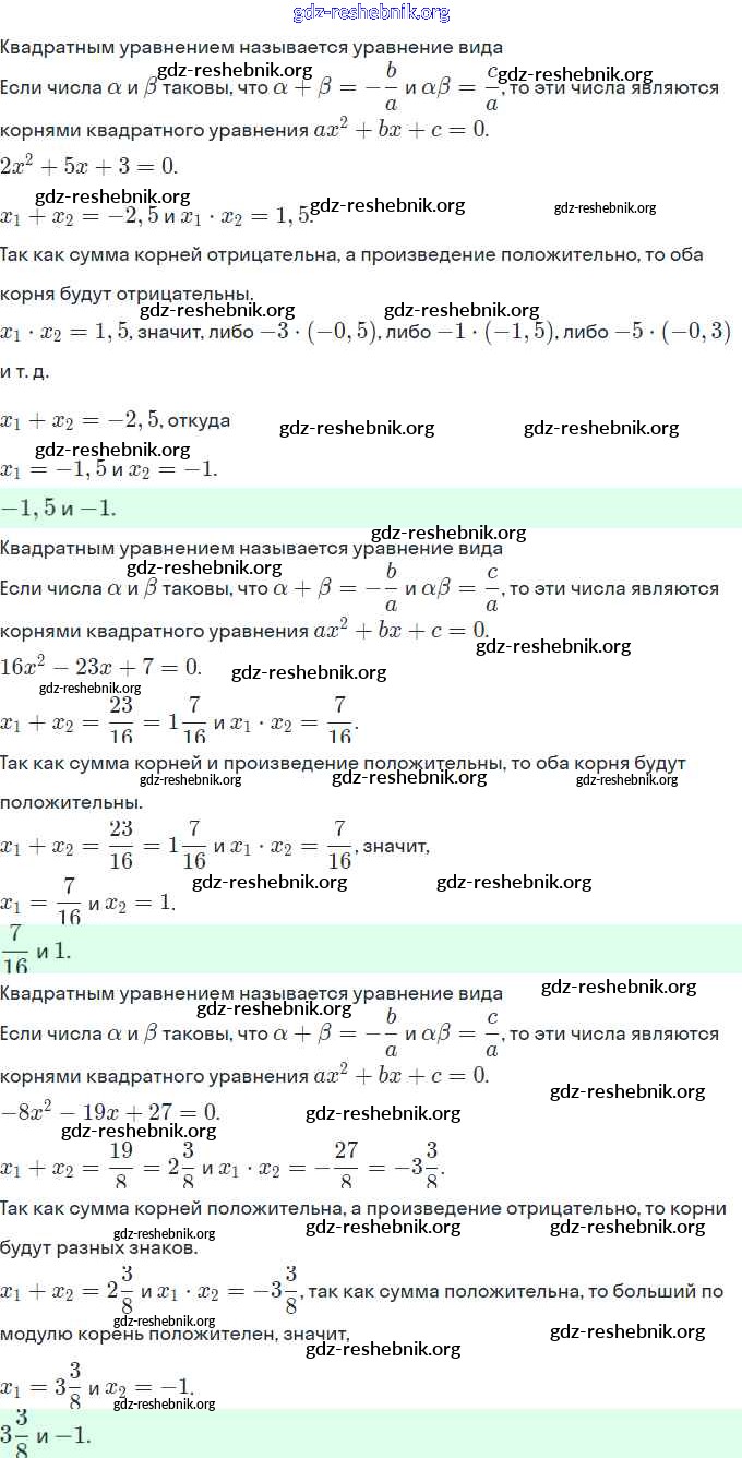 ГДЗ решебники Учебник по Алгебре 8 класс Мерзляк, Полонский Алгоритм успеха - §21. Теорема Виета 729