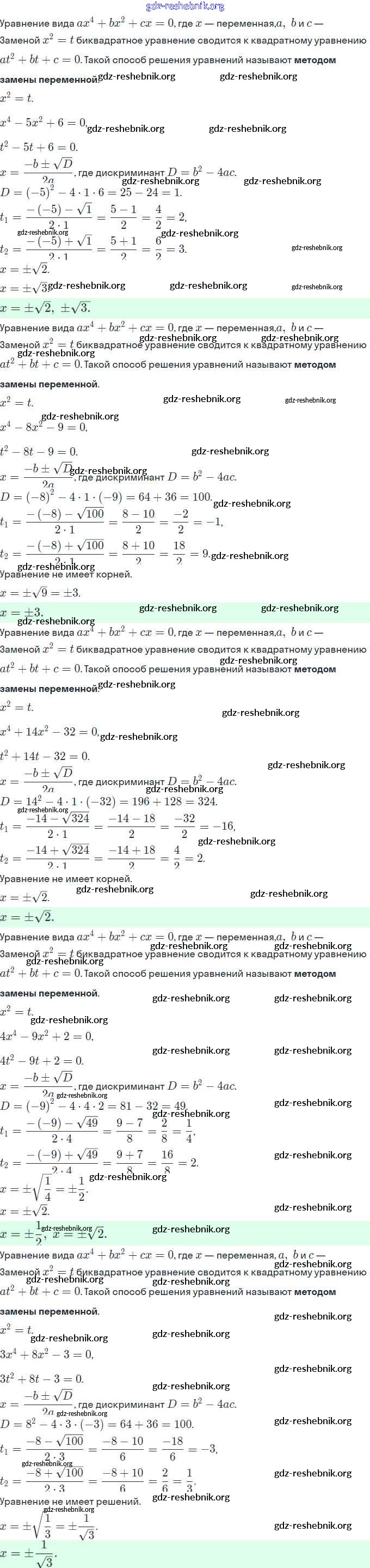 §23. Решение уравнений, сводящихся к квадратным уравнениям