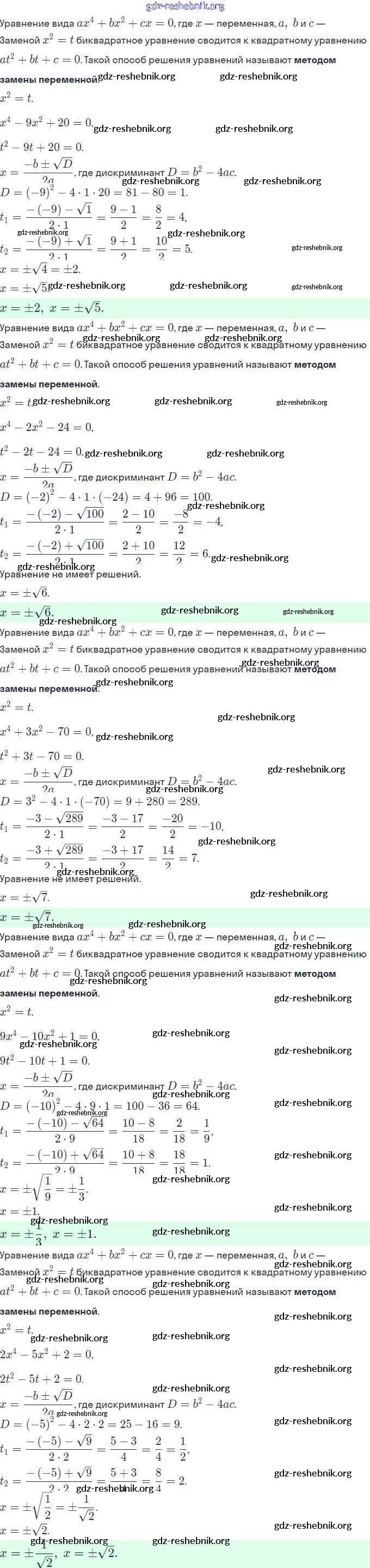 §23. Решение уравнений, сводящихся к квадратным уравнениям