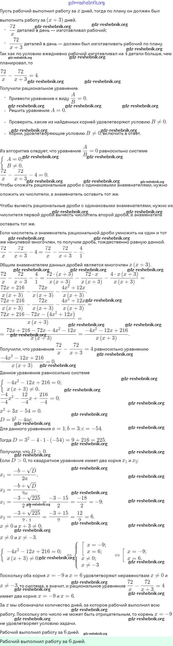 ГДЗ решебники Учебник по Алгебре 8 класс Мерзляк, Полонский Алгоритм успеха - §24. Рациональные уравнения как математические модели реальных ситуаций 809