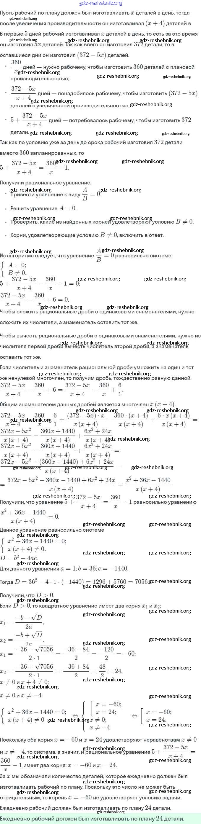gdz-reshebnik.org - сайт готовых домашних заданий и решебников для школьников по Алгебре для восьмого класса. Предоставляем готовые ответы на задания, авторские материалы к Учебнику Мерзляк, Полонский Алгоритм успеха - §24. Рациональные уравнения как математические модели реальных ситуаций 830 . Основная часть контента представлена в бесплатном онлайн-формате с удобным и простым интерфейсом.