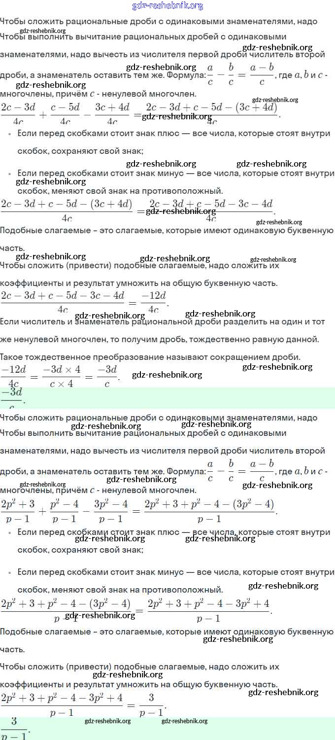 gdz-reshebnik.org - сайт готовых домашних заданий и решебников для школьников по Алгебре для восьмого класса. Предоставляем готовые ответы на задания, авторские материалы к Рабочей тетради Миндюк, Шлыкова УМК Часть 1, 2 - §3. Сложение и вычитание дробей с одинаковыми знаменателями 3 . Основная часть контента представлена в бесплатном онлайн-формате с удобным и простым интерфейсом.
