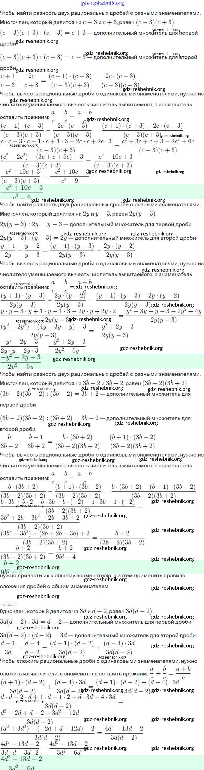 gdz-reshebnik.org - сайт готовых домашних заданий и решебников для школьников по Алгебре для восьмого класса. Предоставляем готовые ответы на задания, авторские материалы к Рабочей тетради Миндюк, Шлыкова УМК Часть 1, 2 - §4. Сложение и вычитание дробей с разными знаменателями 4 . Основная часть контента представлена в бесплатном онлайн-формате с удобным и простым интерфейсом.