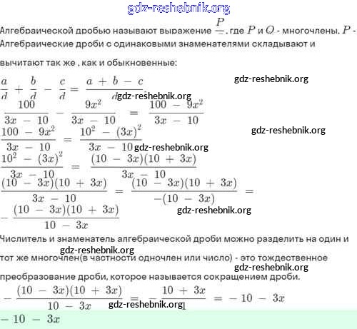 §3. Сложение и вычитание алгебраических дробей с одинаковыми знаменателями