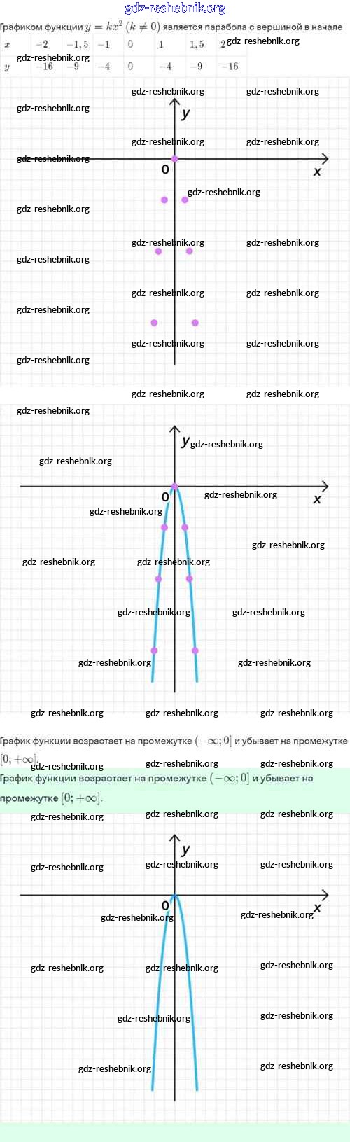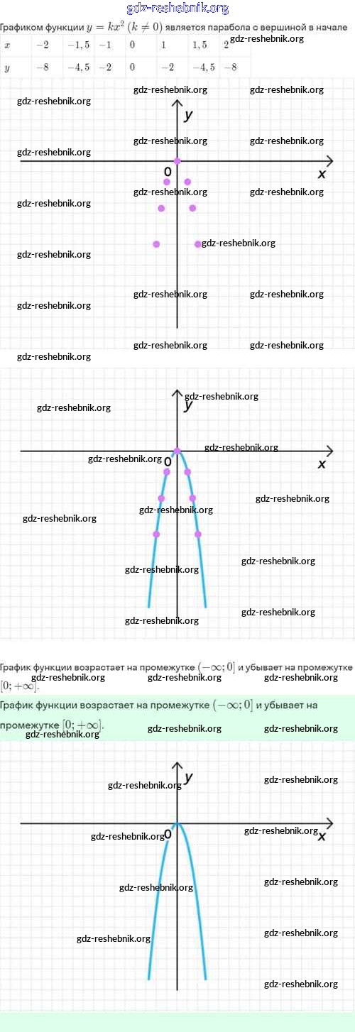 gdz-reshebnik.org - сайт готовых домашних заданий и решебников для школьников по Алгебре для восьмого класса. Предоставляем готовые ответы на задания, авторские материалы к Задачнику Мордкович, Александрова Часть 2 Базовый уровень - §19. Функция y=kx², её свойства и график 19.4 . Основная часть контента представлена в бесплатном онлайн-формате с удобным и простым интерфейсом.