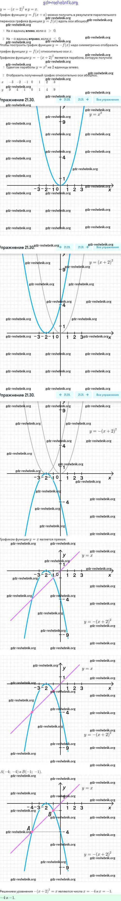 ГДЗ решебники Задачник по Алгебре 8 класс Мордкович, Александрова Часть 2 Базовый уровень - §21. Как построить график функции y=f(x+l), если известен график функции y=f(x) 21.30