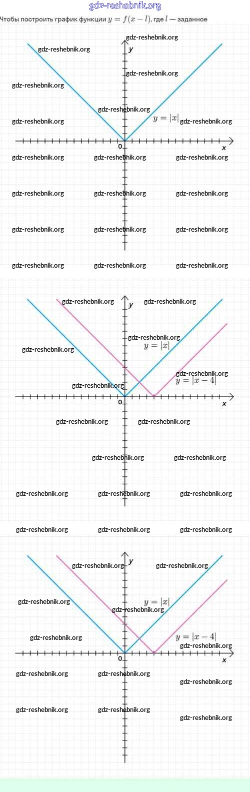 gdz-reshebnik.org - сайт готовых домашних заданий и решебников для школьников по Алгебре для восьмого класса. Предоставляем готовые ответы на задания, авторские материалы к Задачнику Мордкович, Александрова Часть 2 Базовый уровень - §21. Как построить график функции y=f(x+l), если известен график функции y=f(x) 21.4 . Основная часть контента представлена в бесплатном онлайн-формате с удобным и простым интерфейсом.
