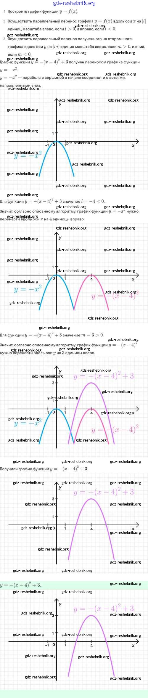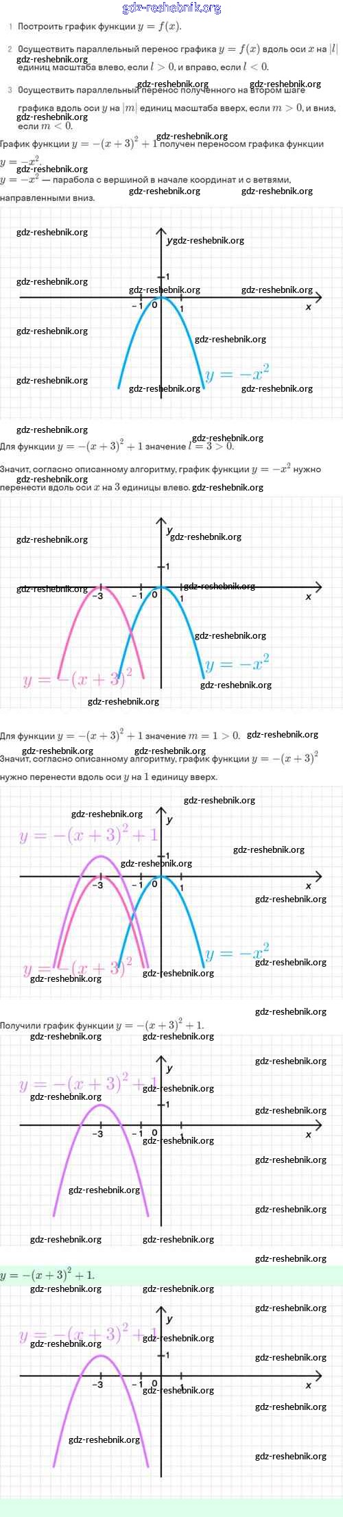 ГДЗ решебники Задачник по Алгебре 8 класс Мордкович, Александрова Часть 2 Базовый уровень - §23. Как построить график функции y=f(x+l)+m, если известен график функции y=f(x) 23.7