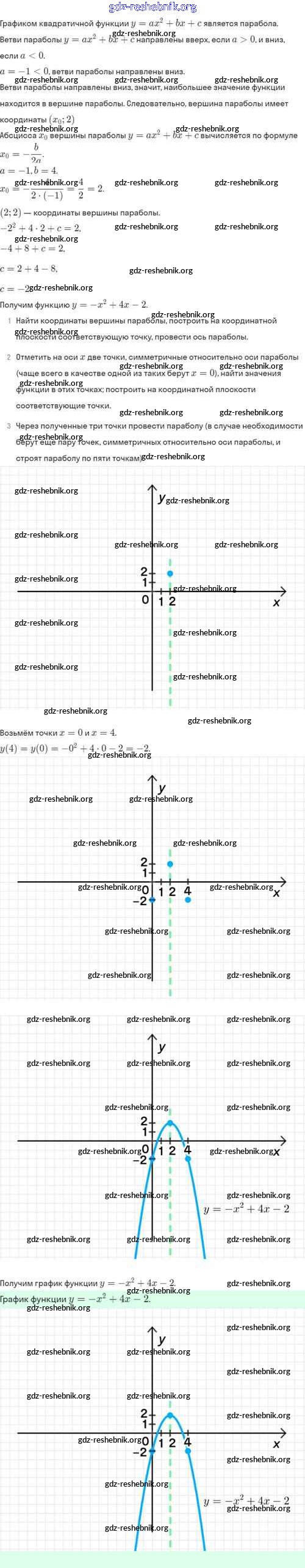 gdz-reshebnik.org - сайт готовых домашних заданий и решебников для школьников по Алгебре для восьмого класса. Предоставляем готовые ответы на задания, авторские материалы к Задачнику Мордкович, Александрова Часть 2 Базовый уровень - §24. Функция y=ax²+bx+c, её свойства и график 24.14 . Основная часть контента представлена в бесплатном онлайн-формате с удобным и простым интерфейсом.