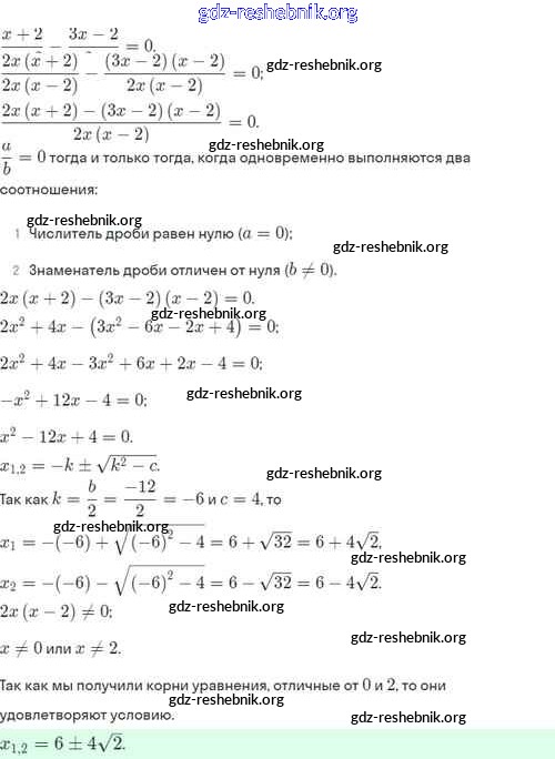 gdz-reshebnik.org - сайт готовых домашних заданий и решебников для школьников по Алгебре для восьмого класса. Предоставляем готовые ответы на задания, авторские материалы к Задачнику Мордкович, Александрова Часть 2 Базовый уровень - §31. Ещё одна формула корней квадратного уравнения 31.6 . Основная часть контента представлена в бесплатном онлайн-формате с удобным и простым интерфейсом.