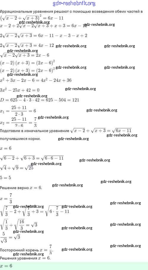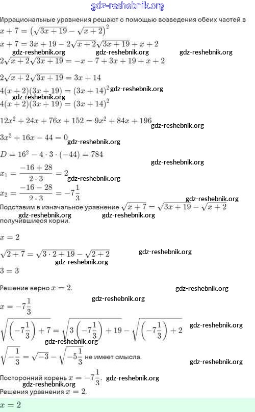 gdz-reshebnik.org - сайт готовых домашних заданий и решебников для школьников по Алгебре для восьмого класса. Предоставляем готовые ответы на задания, авторские материалы к Задачнику Мордкович, Александрова Часть 2 Базовый уровень - §33. Иррациональные уравнения 33.21 . Основная часть контента представлена в бесплатном онлайн-формате с удобным и простым интерфейсом.