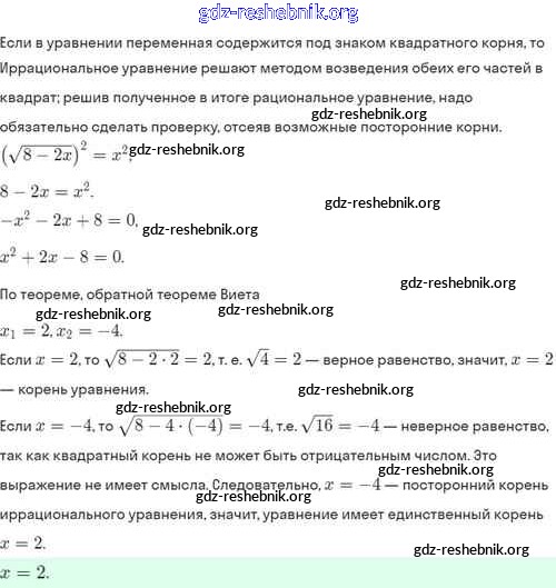 ГДЗ решебники Задачник по Алгебре 8 класс Мордкович, Александрова Часть 2 Базовый уровень - §33. Иррациональные уравнения 33.8