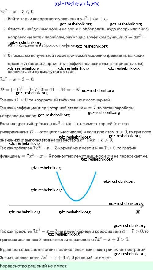 gdz-reshebnik.org - сайт готовых домашних заданий и решебников для школьников по Алгебре для восьмого класса. Предоставляем готовые ответы на задания, авторские материалы к Задачнику Мордкович, Александрова Часть 2 Базовый уровень - §37. Решение квадратных неравенств 37.9 . Основная часть контента представлена в бесплатном онлайн-формате с удобным и простым интерфейсом.