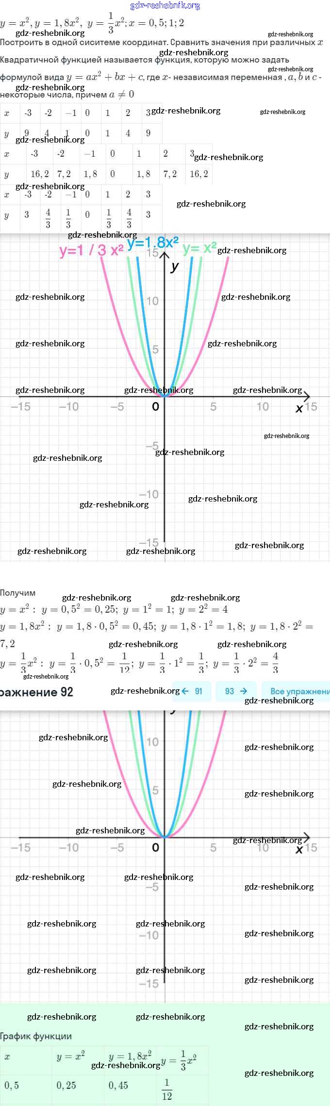 ГДЗ решебники Учебник по Алгебре 9 класс Макарычев, Миндюк - Глава 1. Квадратичная функция (упражнения) 92