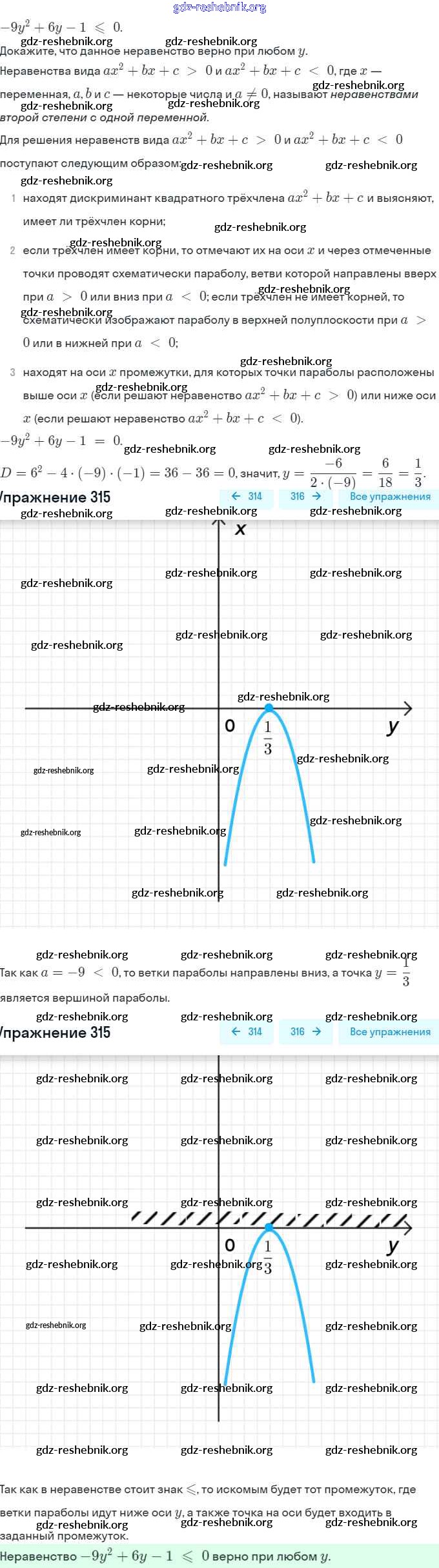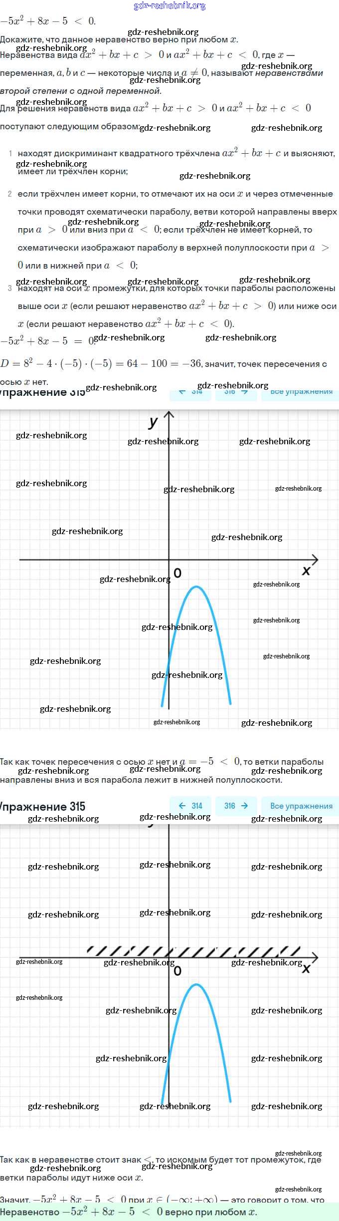 gdz-reshebnik.org - сайт готовых домашних заданий и решебников для школьников по Алгебре для девятого класса. Предоставляем готовые ответы на задания, авторские материалы к Учебнику Макарычев, Миндюк - Глава 2. Уравнения и неравенства с одной переменной (упражнения) 315 . Основная часть контента представлена в бесплатном онлайн-формате с удобным и простым интерфейсом.