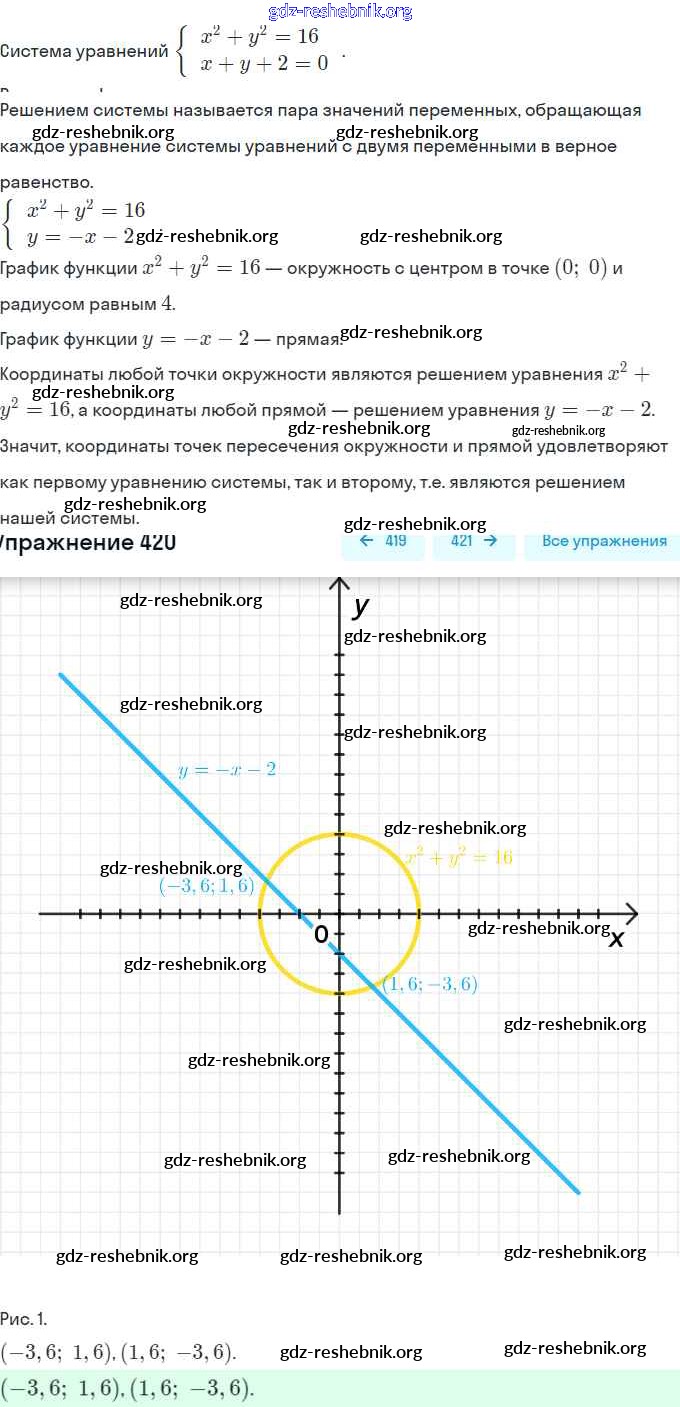 gdz-reshebnik.org - сайт готовых домашних заданий и решебников для школьников по Алгебре для девятого класса. Предоставляем готовые ответы на задания, авторские материалы к Учебнику Макарычев, Миндюк - Глава 3. Уравнения и неравенства с двумя переменными (упражнения) 420 . Основная часть контента представлена в бесплатном онлайн-формате с удобным и простым интерфейсом.