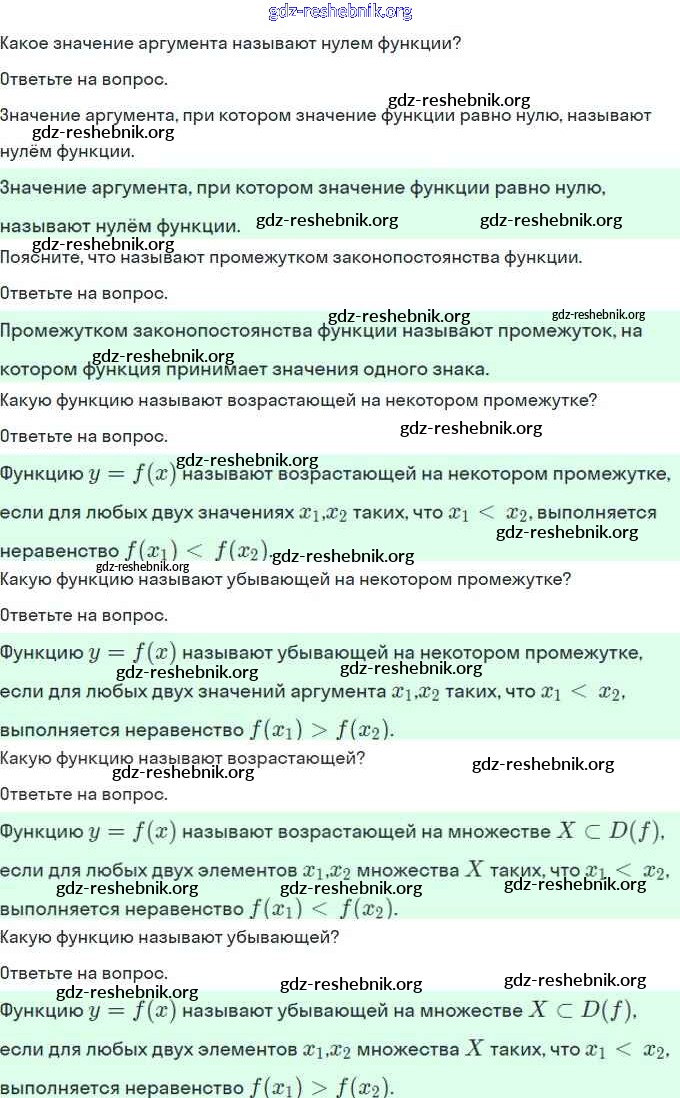 ГДЗ решебники Учебник по Алгебре 9 класс Мерзляк, Полонский Алгоритм успеха - Вопросы к параграфам 8