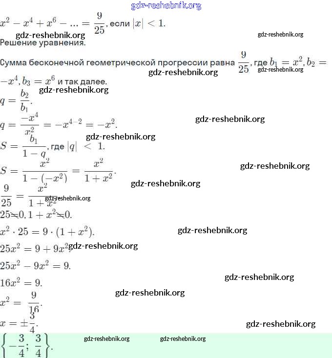 gdz-reshebnik.org - сайт готовых домашних заданий и решебников для школьников по Алгебре для девятого класса. Предоставляем готовые ответы на задания, авторские материалы к Рабочей тетради Мерзляк, Полонский Часть 1, 2 - §26. Сумма бесконечной геометрической прогрессии, у которой модуль знаменателя меньше 1 10 . Основная часть контента представлена в бесплатном онлайн-формате с удобным и простым интерфейсом.