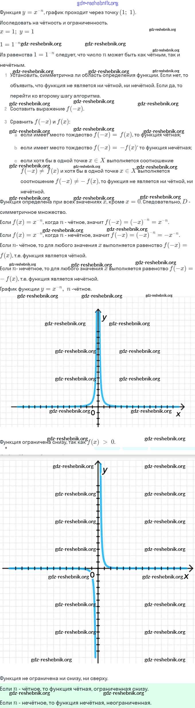§13. Функции y = x⁻ⁿ (n ∈ N), их свойства и графики