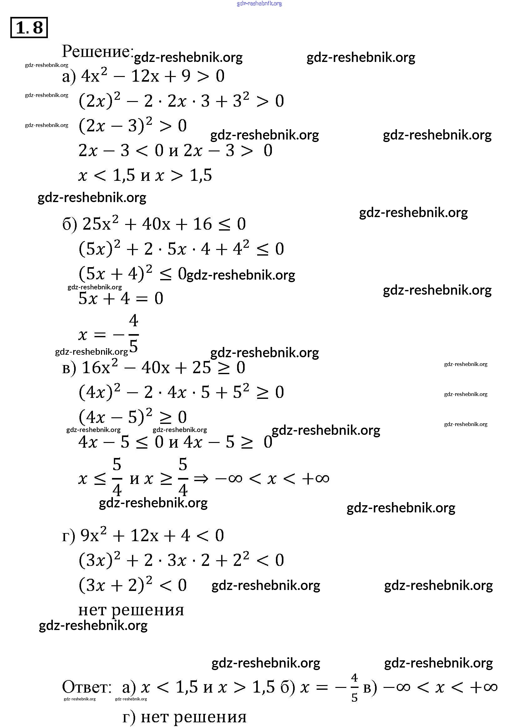 gdz-reshebnik.org - сайт готовых домашних заданий и решебников для школьников по Алгебре для девятого класса. Предоставляем готовые ответы на задания, авторские материалы к Задачнику Мордкович, Александрова Часть 2 - § 1. Линейные и квадратные неравенства 8 . Основная часть контента представлена в бесплатном онлайн-формате с удобным и простым интерфейсом.