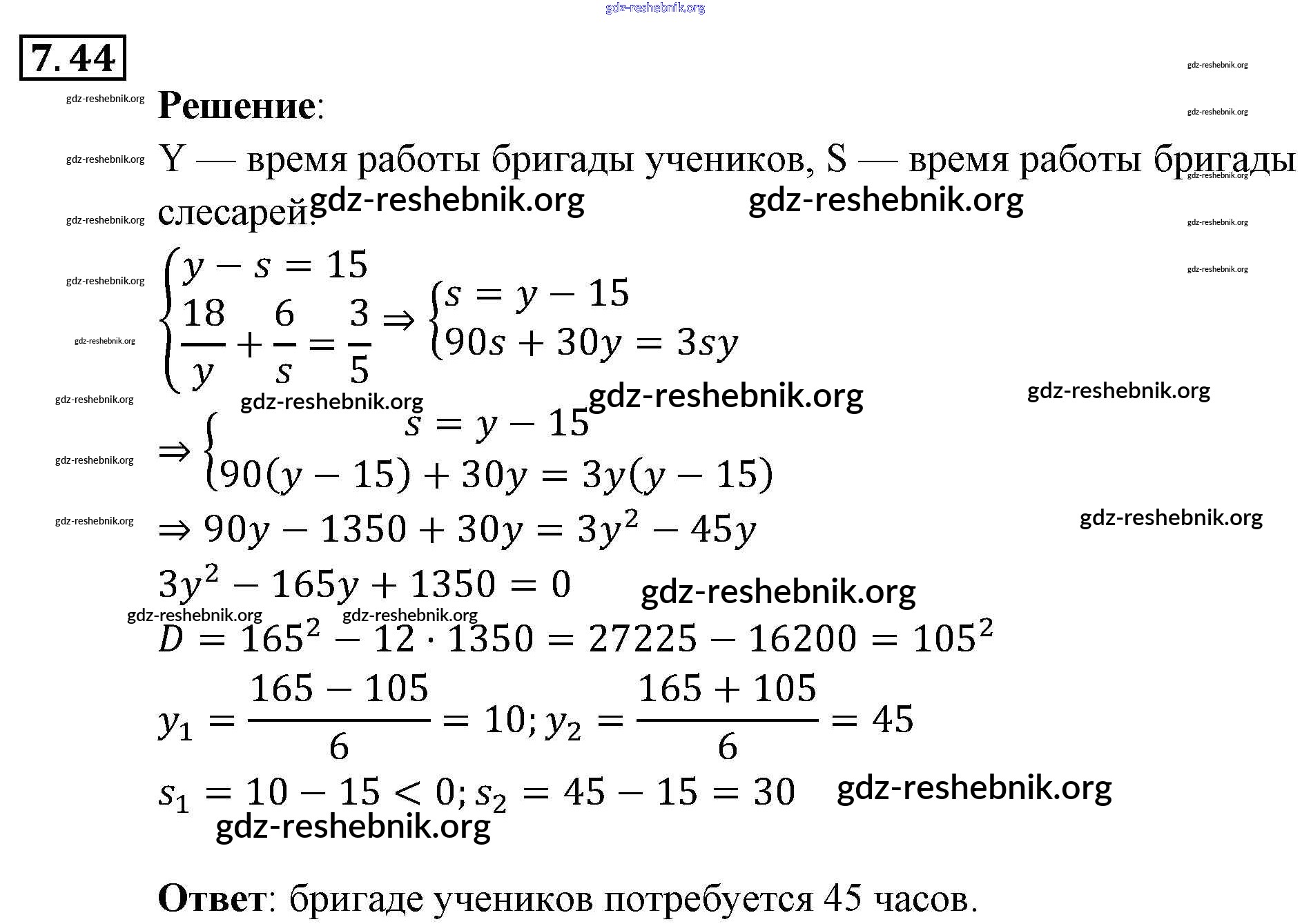 gdz-reshebnik.org - сайт готовых домашних заданий и решебников для школьников по Алгебре для девятого класса. Предоставляем готовые ответы на задания, авторские материалы к Задачнику Мордкович, Александрова Часть 2 - § 7. Системы уравнений как математические модели реальных ситуаций 44 . Основная часть контента представлена в бесплатном онлайн-формате с удобным и простым интерфейсом.