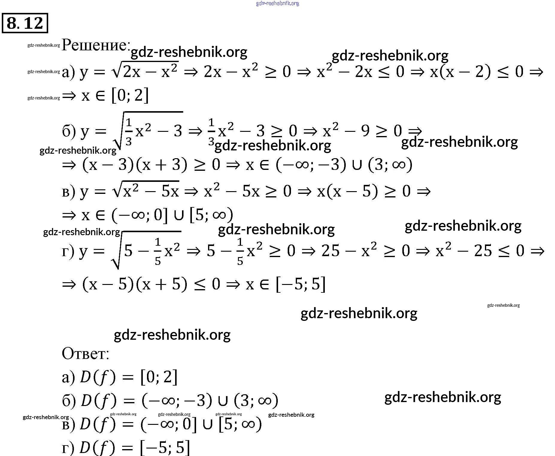 gdz-reshebnik.org - сайт готовых домашних заданий и решебников для школьников по Алгебре для девятого класса. Предоставляем готовые ответы на задания, авторские материалы к Задачнику Мордкович, Александрова Часть 2 - § 8. Определение числовой функции. Область определения, область значений функции 12 . Основная часть контента представлена в бесплатном онлайн-формате с удобным и простым интерфейсом.