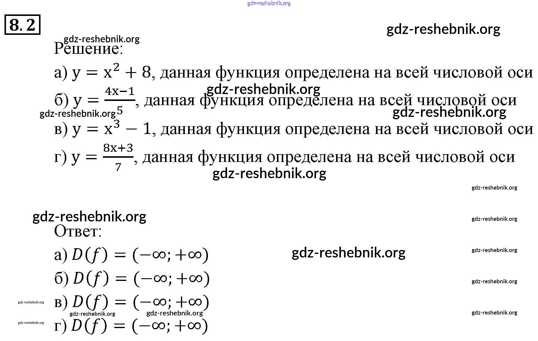 gdz-reshebnik.org - сайт готовых домашних заданий и решебников для школьников по Алгебре для девятого класса. Предоставляем готовые ответы на задания, авторские материалы к Задачнику Мордкович, Александрова Часть 2 - § 8. Определение числовой функции. Область определения, область значений функции 2 . Основная часть контента представлена в бесплатном онлайн-формате с удобным и простым интерфейсом.