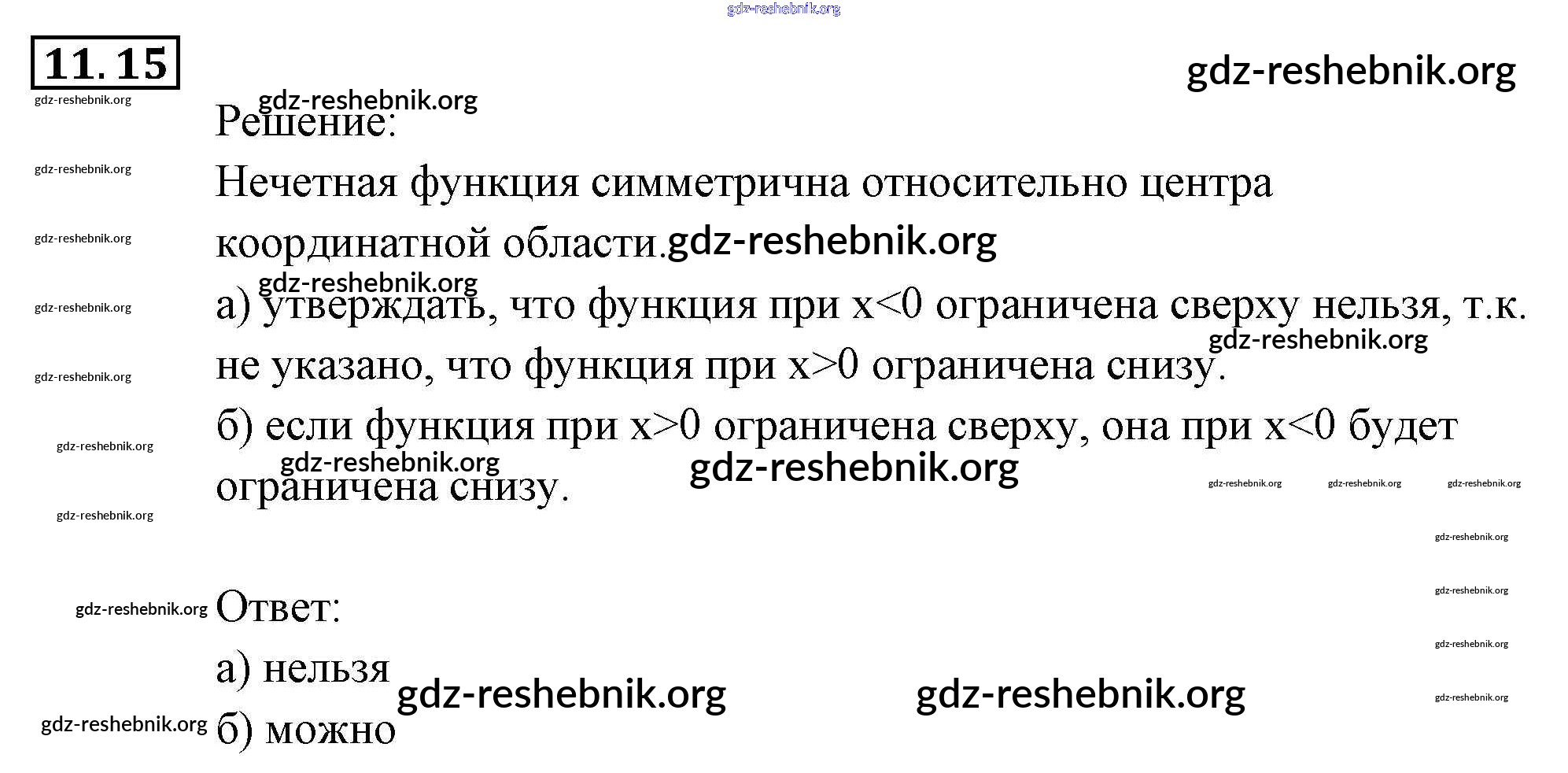 gdz-reshebnik.org - сайт готовых домашних заданий и решебников для школьников по Алгебре для девятого класса. Предоставляем готовые ответы на задания, авторские материалы к Задачнику Мордкович, Александрова Часть 2 - § 11. Честные и нечестные функции 15 . Основная часть контента представлена в бесплатном онлайн-формате с удобным и простым интерфейсом.