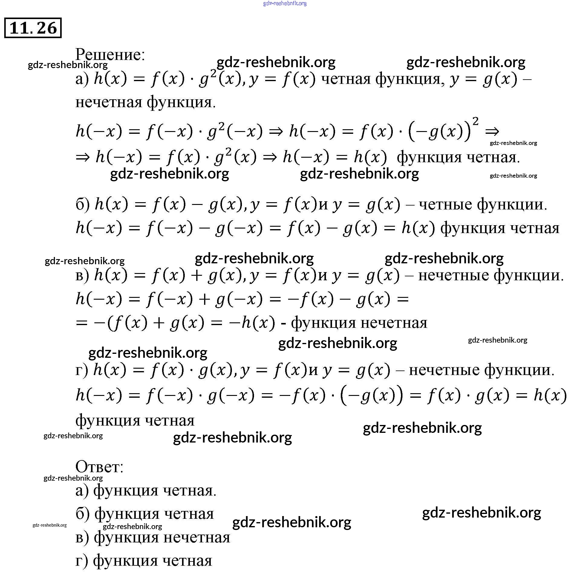 gdz-reshebnik.org - сайт готовых домашних заданий и решебников для школьников по Алгебре для девятого класса. Предоставляем готовые ответы на задания, авторские материалы к Задачнику Мордкович, Александрова Часть 2 - § 11. Честные и нечестные функции 26 . Основная часть контента представлена в бесплатном онлайн-формате с удобным и простым интерфейсом.