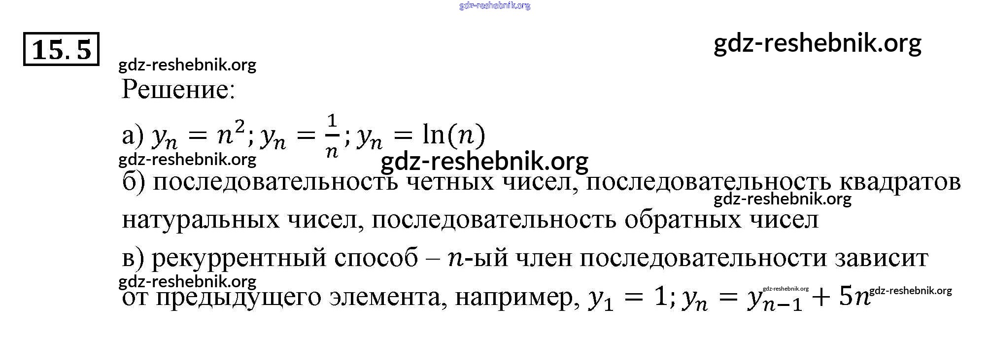 gdz-reshebnik.org - сайт готовых домашних заданий и решебников для школьников по Алгебре для девятого класса. Предоставляем готовые ответы на задания, авторские материалы к Задачнику Мордкович, Александрова Часть 2 - § 15. Числовые последовательности 5 . Основная часть контента представлена в бесплатном онлайн-формате с удобным и простым интерфейсом.