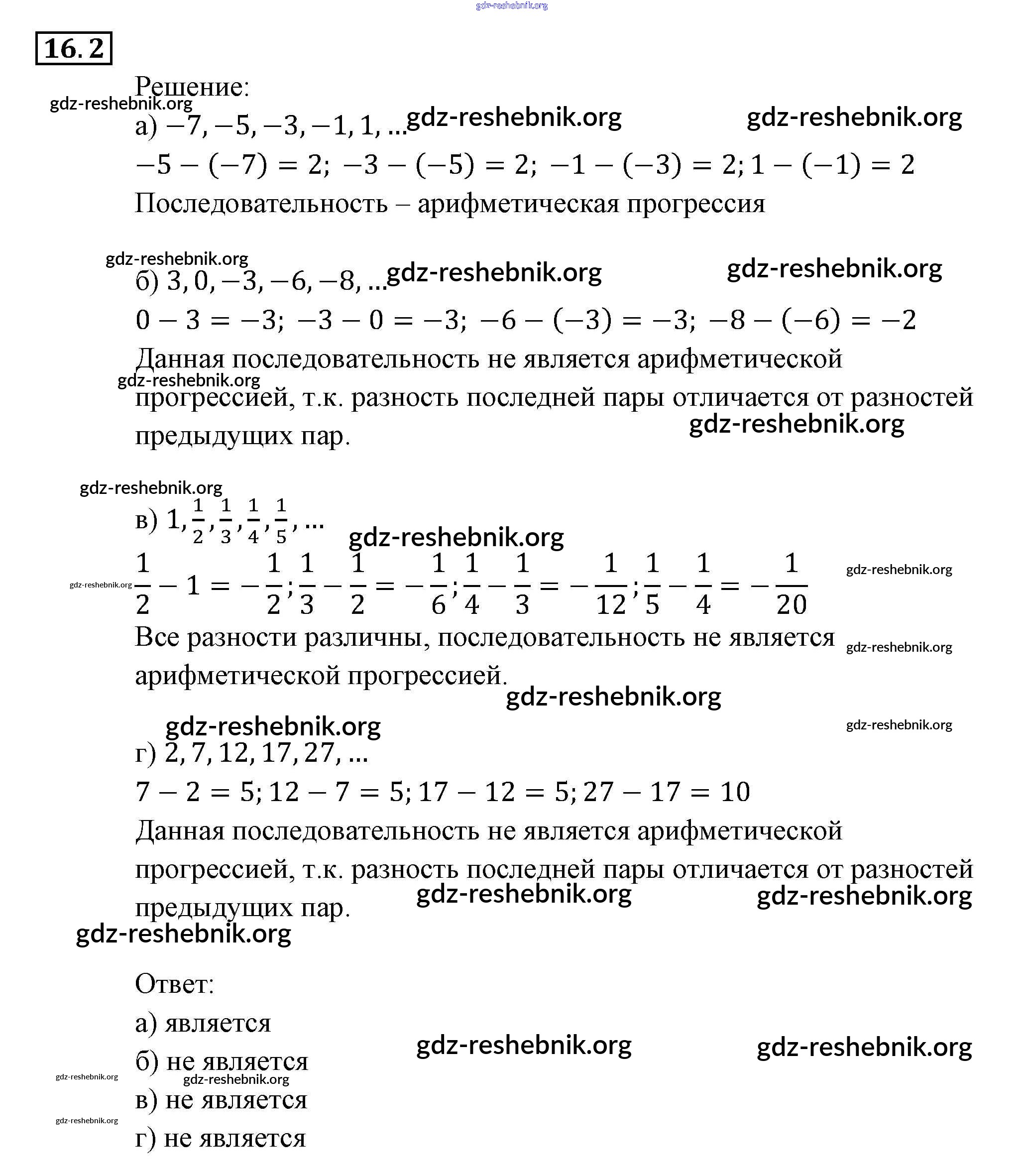 § 16. Арифметическая прогрессия