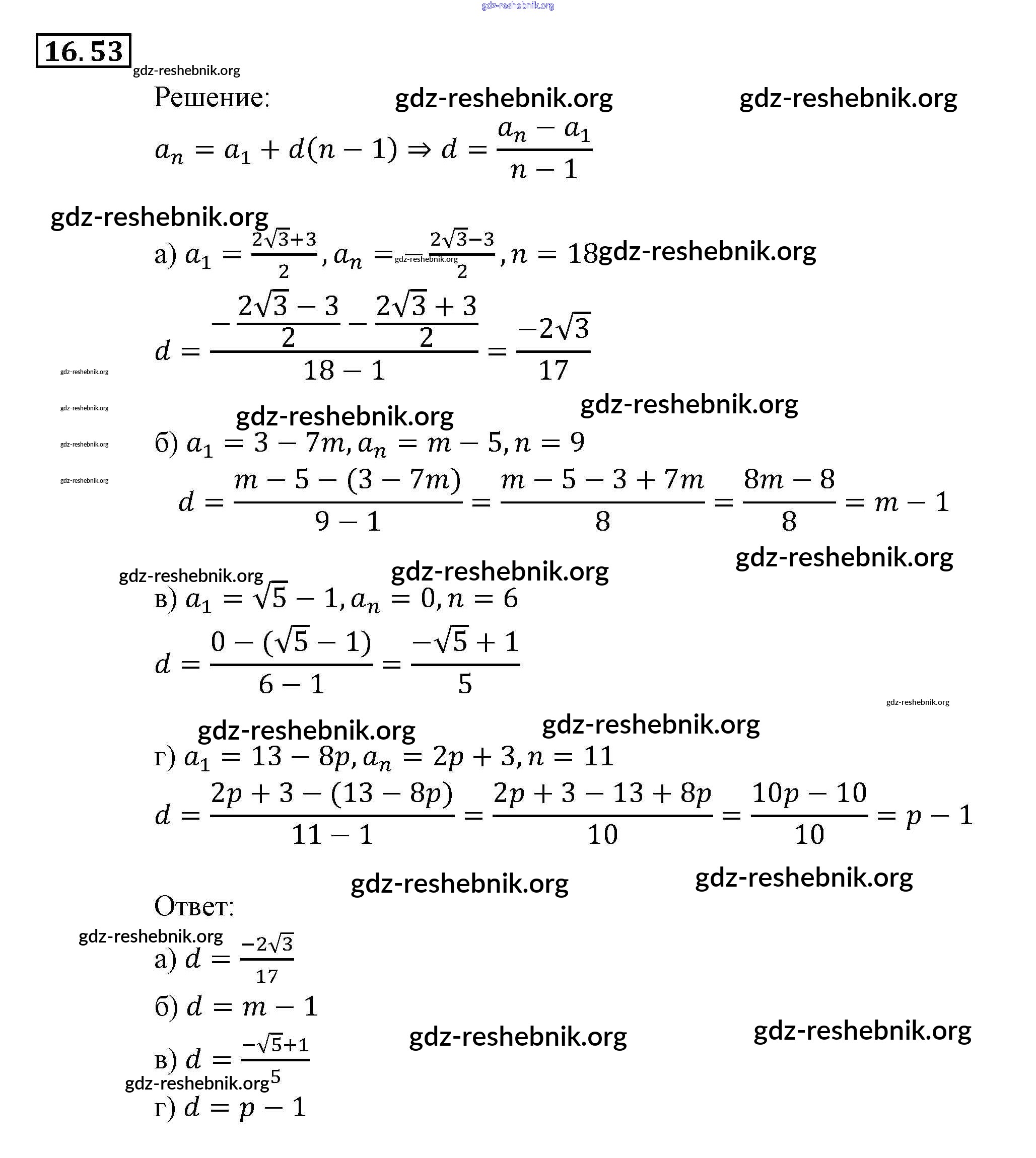 gdz-reshebnik.org - сайт готовых домашних заданий и решебников для школьников по Алгебре для девятого класса. Предоставляем готовые ответы на задания, авторские материалы к Задачнику Мордкович, Александрова Часть 2 - § 16. Арифметическая прогрессия 53 . Основная часть контента представлена в бесплатном онлайн-формате с удобным и простым интерфейсом.