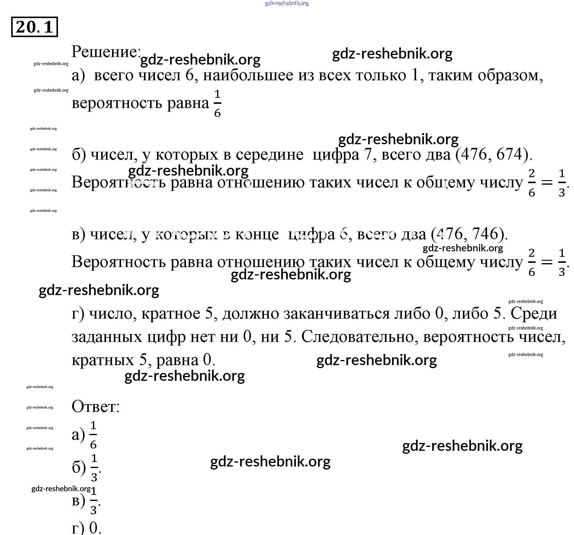 gdz-reshebnik.org - сайт готовых домашних заданий и решебников для школьников по Алгебре для девятого класса. Предоставляем готовые ответы на задания, авторские материалы к Задачнику Мордкович, Александрова Часть 2 - § 20. Простейшие вероятностные задачи 1 . Основная часть контента представлена в бесплатном онлайн-формате с удобным и простым интерфейсом.