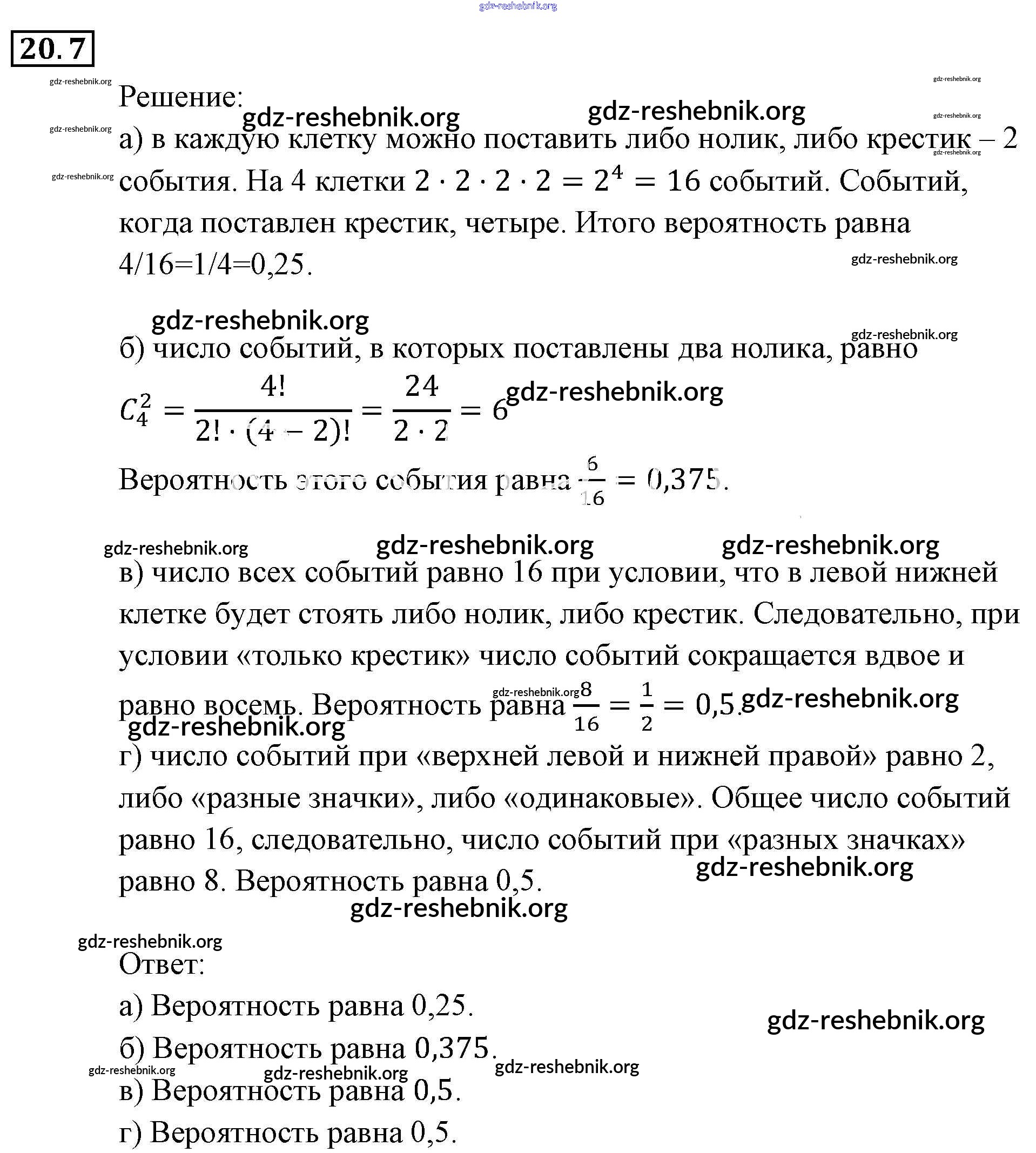gdz-reshebnik.org - сайт готовых домашних заданий и решебников для школьников по Алгебре для девятого класса. Предоставляем готовые ответы на задания, авторские материалы к Задачнику Мордкович, Александрова Часть 2 - § 20. Простейшие вероятностные задачи 7 . Основная часть контента представлена в бесплатном онлайн-формате с удобным и простым интерфейсом.