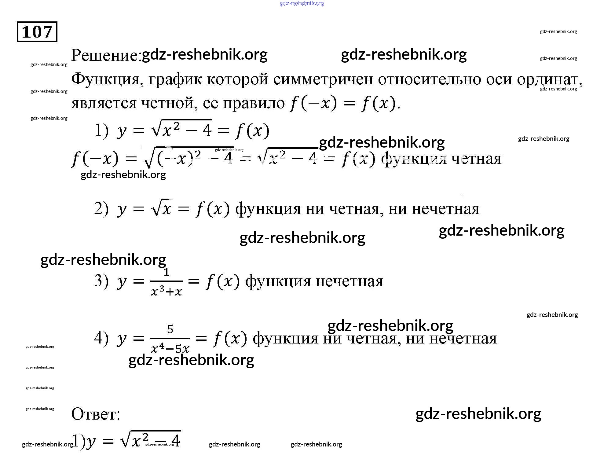 gdz-reshebnik.org - сайт готовых домашних заданий и решебников для школьников по Алгебре для девятого класса. Предоставляем готовые ответы на задания, авторские материалы к Задачнику Мордкович, Александрова Часть 2 - Функции и графики 107 . Основная часть контента представлена в бесплатном онлайн-формате с удобным и простым интерфейсом.