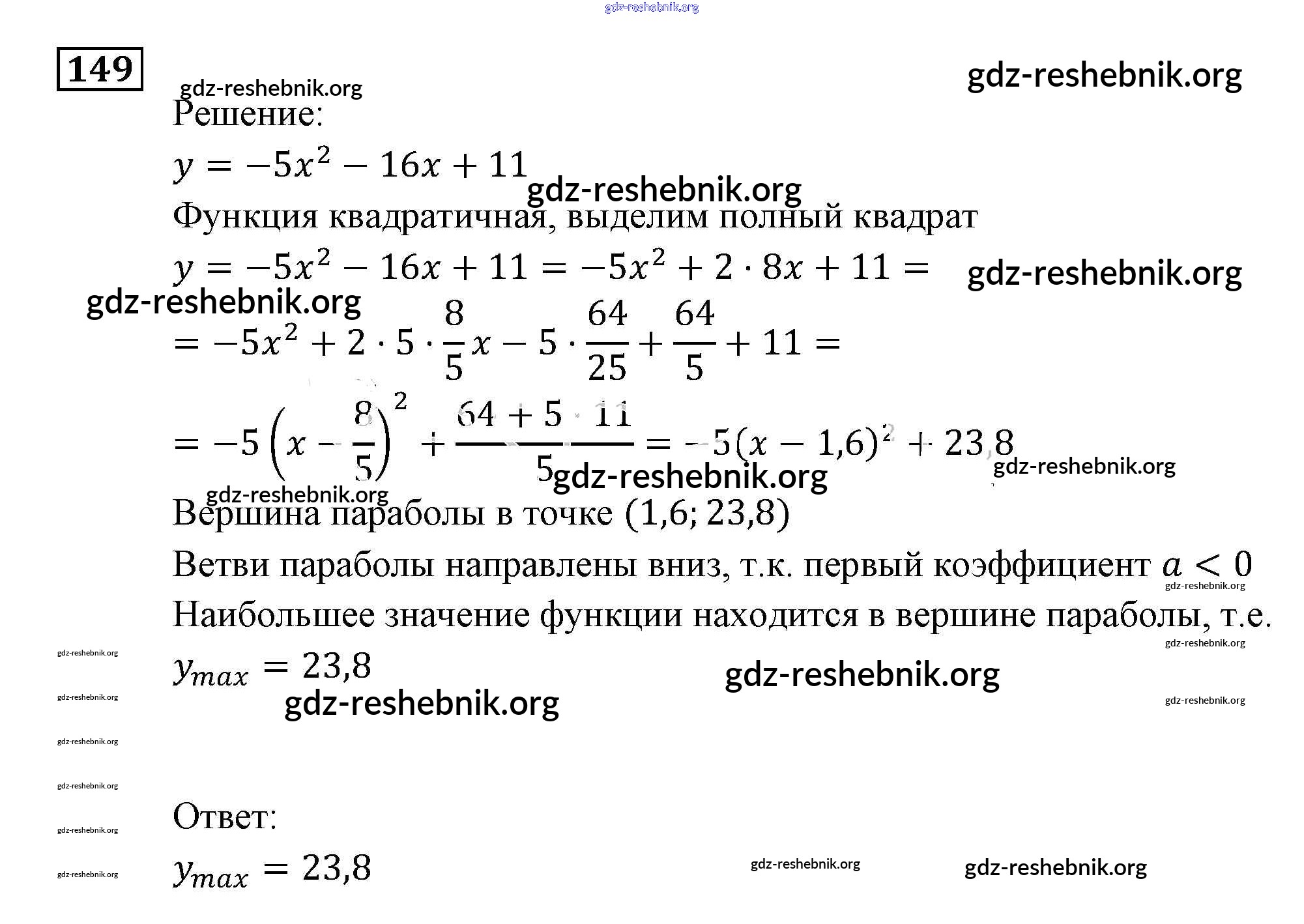 gdz-reshebnik.org - сайт готовых домашних заданий и решебников для школьников по Алгебре для девятого класса. Предоставляем готовые ответы на задания, авторские материалы к Задачнику Мордкович, Александрова Часть 2 - Функции и графики 149 . Основная часть контента представлена в бесплатном онлайн-формате с удобным и простым интерфейсом.