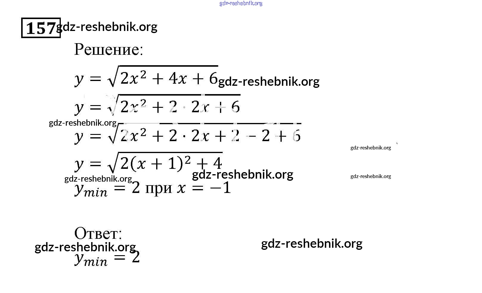 gdz-reshebnik.org - сайт готовых домашних заданий и решебников для школьников по Алгебре для девятого класса. Предоставляем готовые ответы на задания, авторские материалы к Задачнику Мордкович, Александрова Часть 2 - Функции и графики 157 . Основная часть контента представлена в бесплатном онлайн-формате с удобным и простым интерфейсом.
