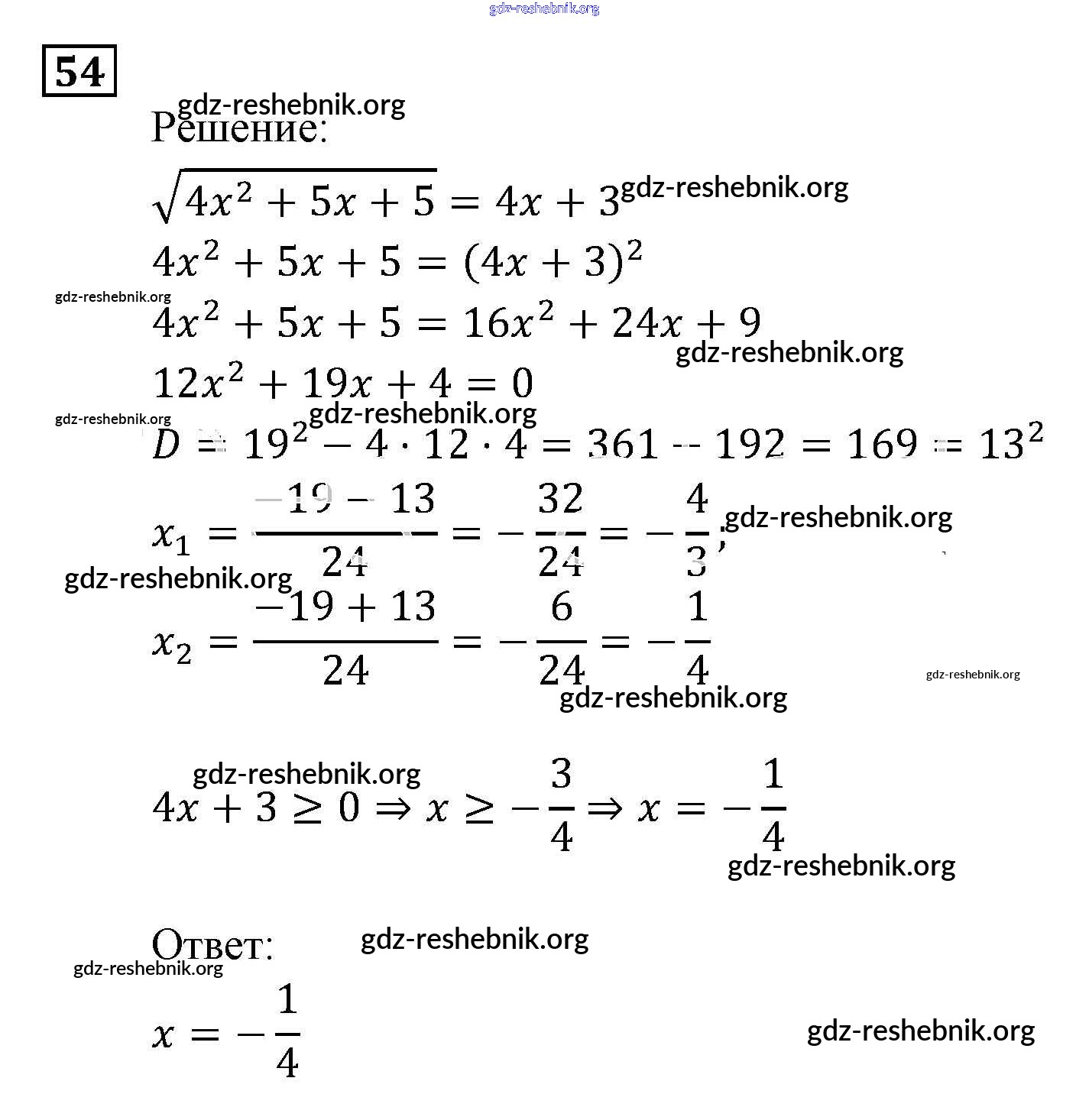 gdz-reshebnik.org - сайт готовых домашних заданий и решебников для школьников по Алгебре для девятого класса. Предоставляем готовые ответы на задания, авторские материалы к Задачнику Мордкович, Александрова Часть 2 - Уравнения и системы уравнений 54 . Основная часть контента представлена в бесплатном онлайн-формате с удобным и простым интерфейсом.
