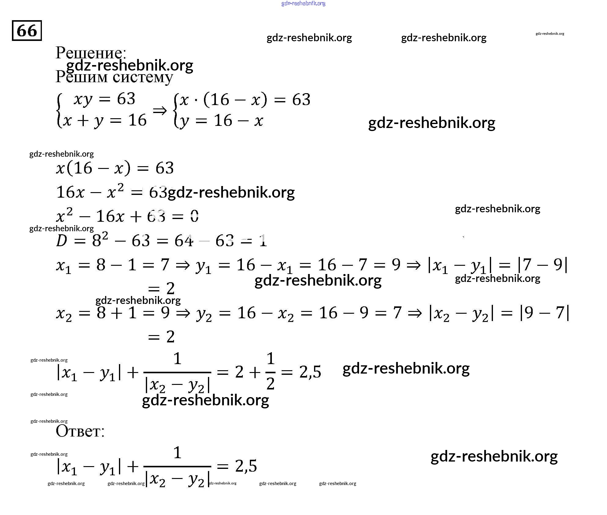 gdz-reshebnik.org - сайт готовых домашних заданий и решебников для школьников по Алгебре для девятого класса. Предоставляем готовые ответы на задания, авторские материалы к Задачнику Мордкович, Александрова Часть 2 - Уравнения и системы уравнений 66 . Основная часть контента представлена в бесплатном онлайн-формате с удобным и простым интерфейсом.
