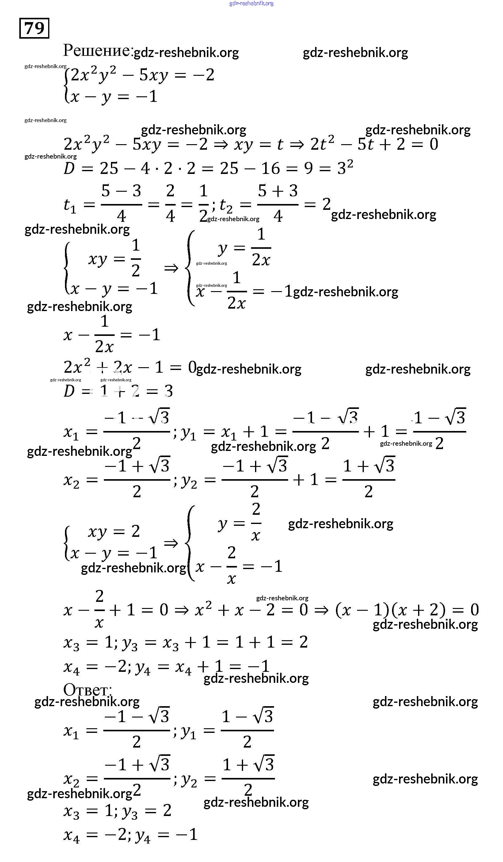 gdz-reshebnik.org - сайт готовых домашних заданий и решебников для школьников по Алгебре для девятого класса. Предоставляем готовые ответы на задания, авторские материалы к Задачнику Мордкович, Александрова Часть 2 - Уравнения и системы уравнений 79 . Основная часть контента представлена в бесплатном онлайн-формате с удобным и простым интерфейсом.