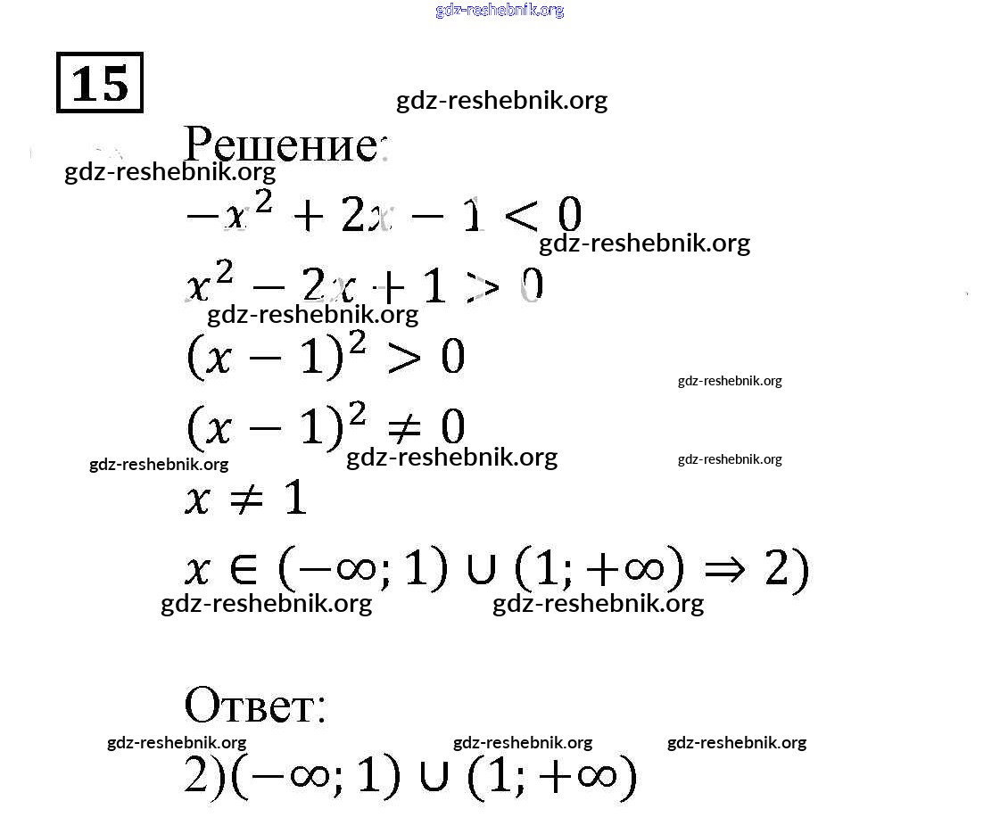 gdz-reshebnik.org - сайт готовых домашних заданий и решебников для школьников по Алгебре для девятого класса. Предоставляем готовые ответы на задания, авторские материалы к Задачнику Мордкович, Александрова Часть 2 - Неравенства и системы неравенств 15 . Основная часть контента представлена в бесплатном онлайн-формате с удобным и простым интерфейсом.