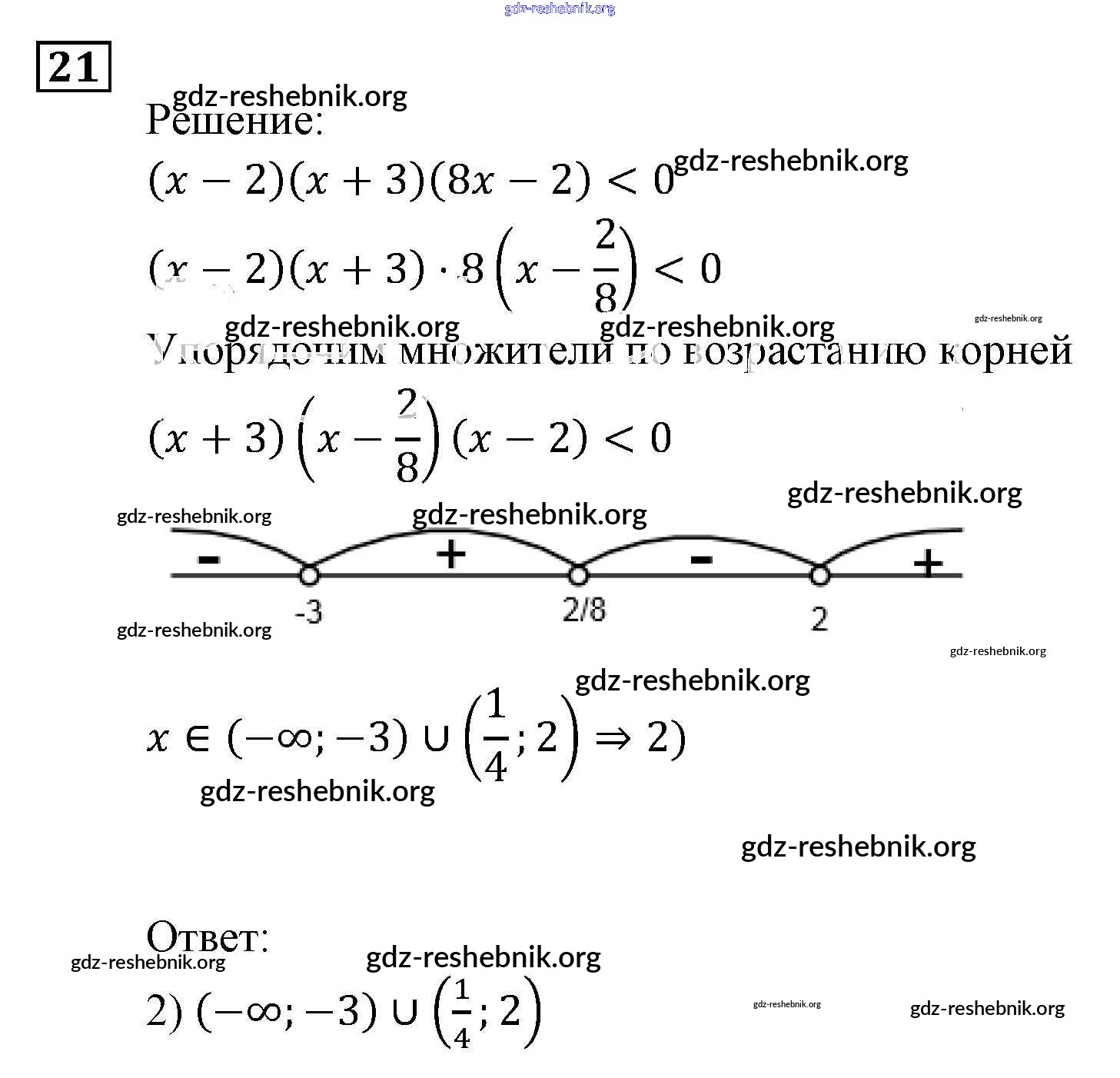 gdz-reshebnik.org - сайт готовых домашних заданий и решебников для школьников по Алгебре для девятого класса. Предоставляем готовые ответы на задания, авторские материалы к Задачнику Мордкович, Александрова Часть 2 - Неравенства и системы неравенств 21 . Основная часть контента представлена в бесплатном онлайн-формате с удобным и простым интерфейсом.