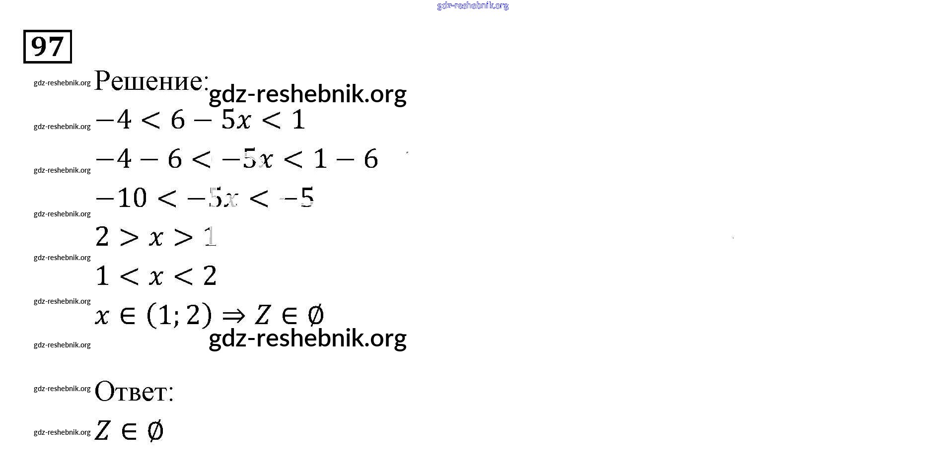 gdz-reshebnik.org - сайт готовых домашних заданий и решебников для школьников по Алгебре для девятого класса. Предоставляем готовые ответы на задания, авторские материалы к Задачнику Мордкович, Александрова Часть 2 - Неравенства и системы неравенств 97 . Основная часть контента представлена в бесплатном онлайн-формате с удобным и простым интерфейсом.