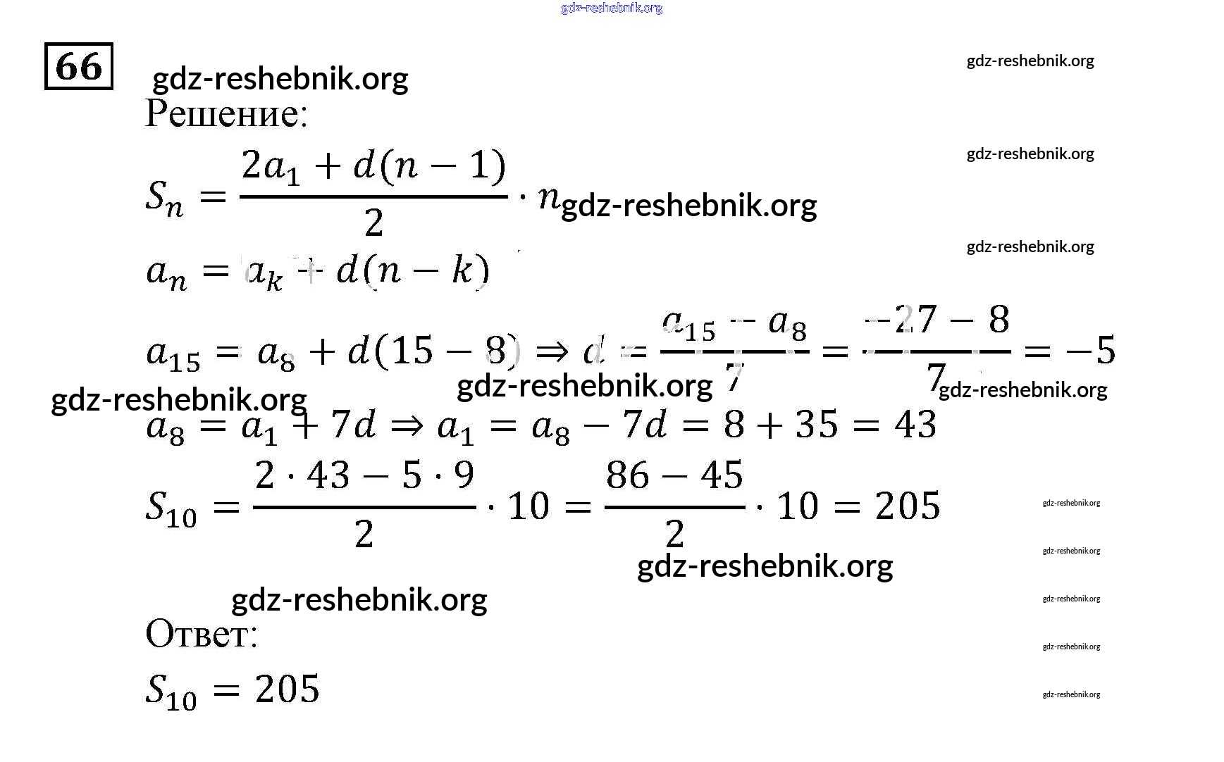 gdz-reshebnik.org - сайт готовых домашних заданий и решебников для школьников по Алгебре для девятого класса. Предоставляем готовые ответы на задания, авторские материалы к Задачнику Мордкович, Александрова Часть 2 - Арифметическая и геометрическая прогрессии 66 . Основная часть контента представлена в бесплатном онлайн-формате с удобным и простым интерфейсом.