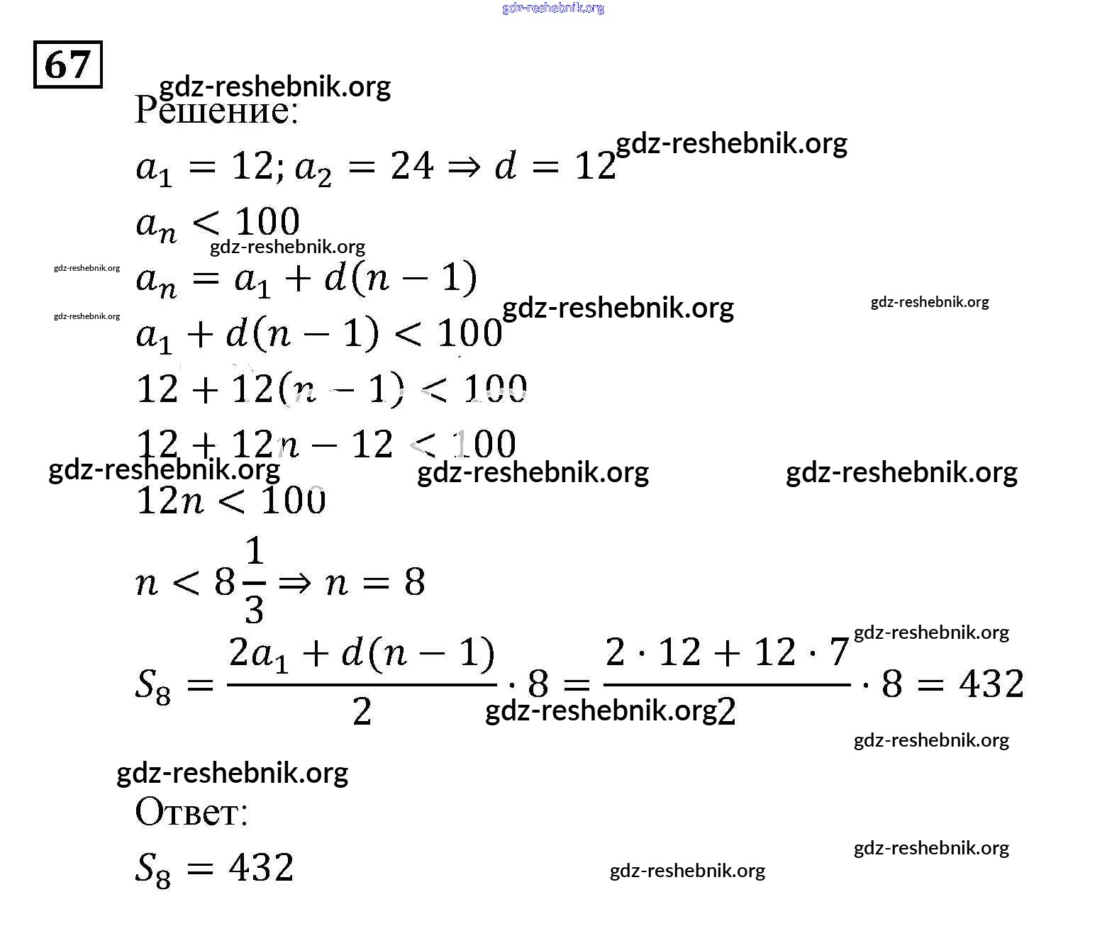 ГДЗ решебники Задачник по Алгебре 9 класс Мордкович, Александрова Часть 2 - Арифметическая и геометрическая прогрессии 67