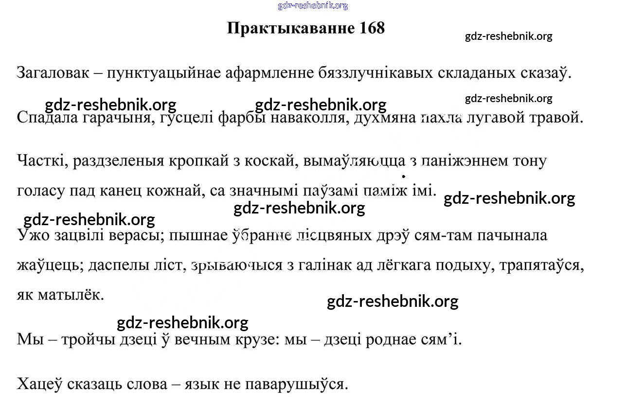 ГДЗ решебники Учебник по Белорусскому языку 9 класс Валочка, Васюковіч - Практыкаванні 168