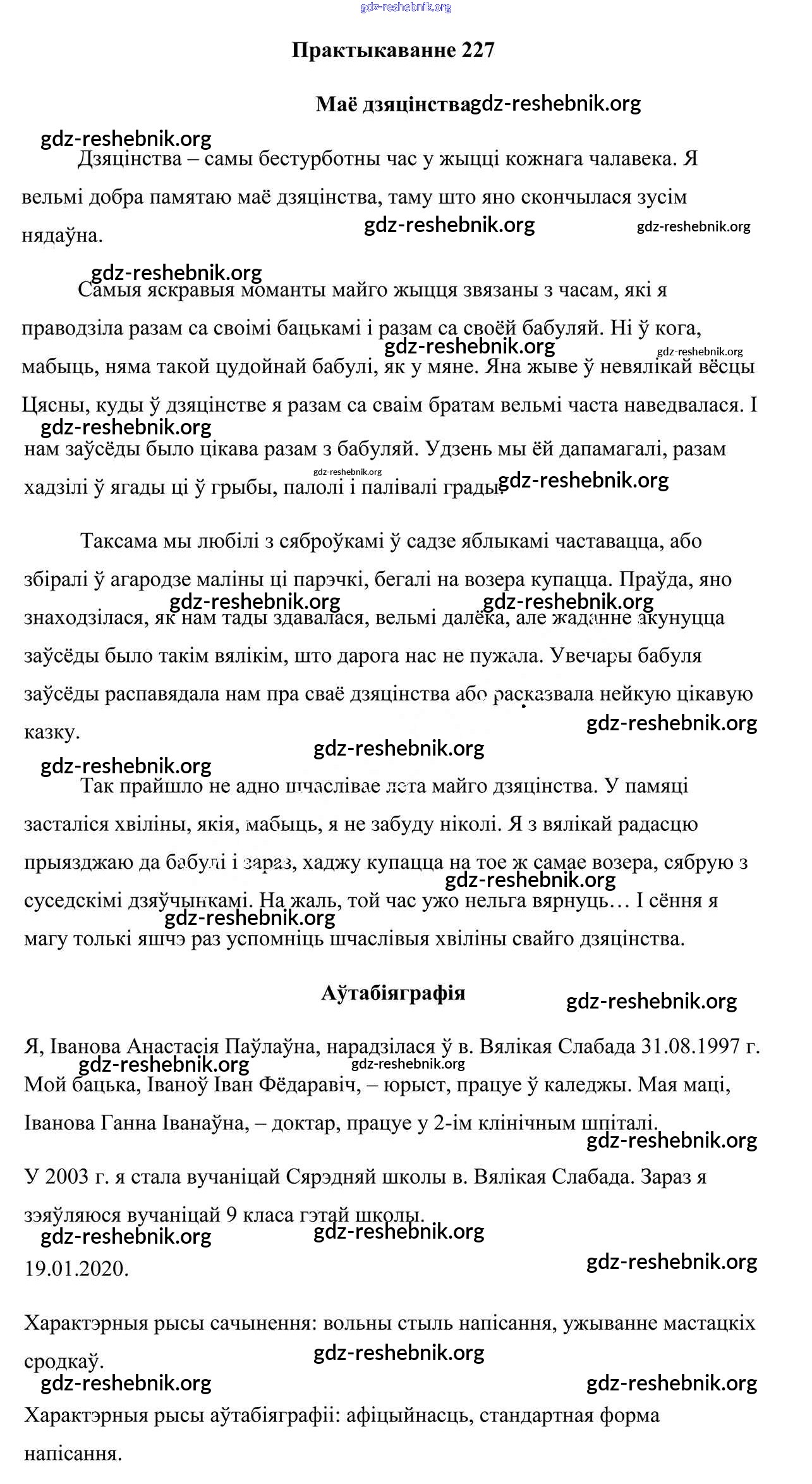 ГДЗ решебники Учебник по Белорусскому языку 9 класс Валочка, Васюковіч - Практыкаванні 227