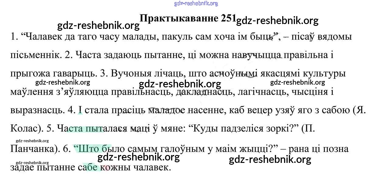 ГДЗ решебники Учебник по Белорусскому языку 9 класс Валочка, Васюковіч - Практыкаванні 251